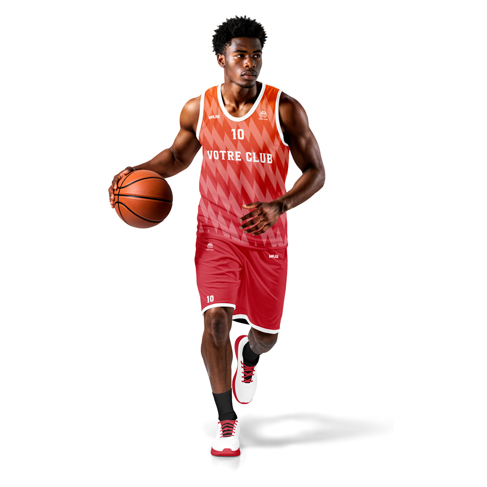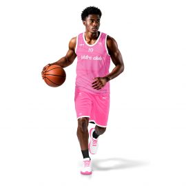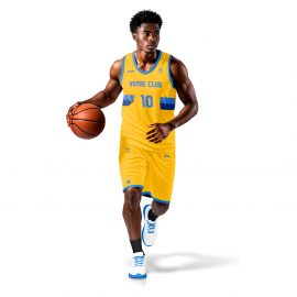 Cette tenue de basket personnalisable est conçue pour allier confort, performance et style unique. Pour obtenir votre maquette personnalisée en moins de 24 heures, ajoutez vos couleurs, votre logo, votre police d’écriture souhaitée pour un look 100% sur mesure.