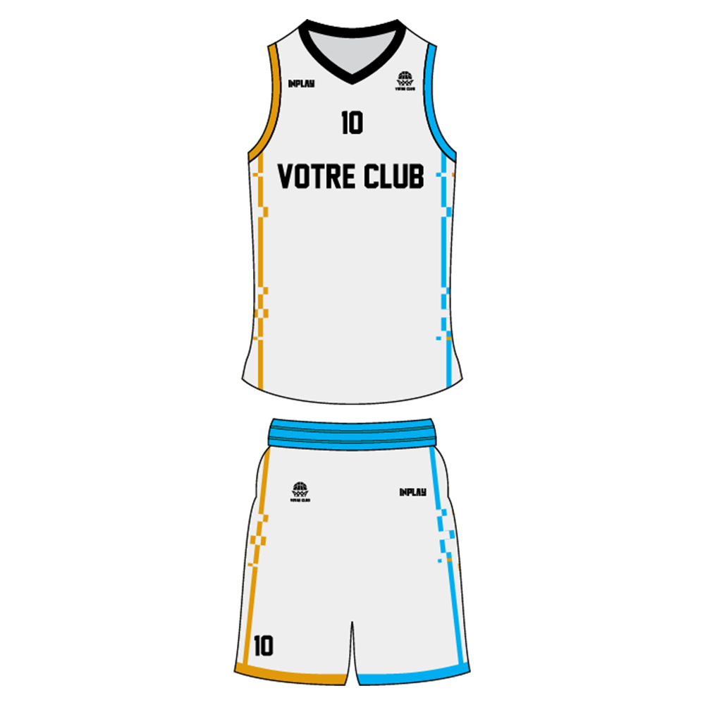 Cette tenue de basket personnalisable est conçue pour allier confort, performance et style unique. Pour obtenir votre maquette personnalisée en moins de 24 heures, ajoutez vos couleurs, votre logo, votre police d’écriture souhaitée pour un look 100% sur mesure.