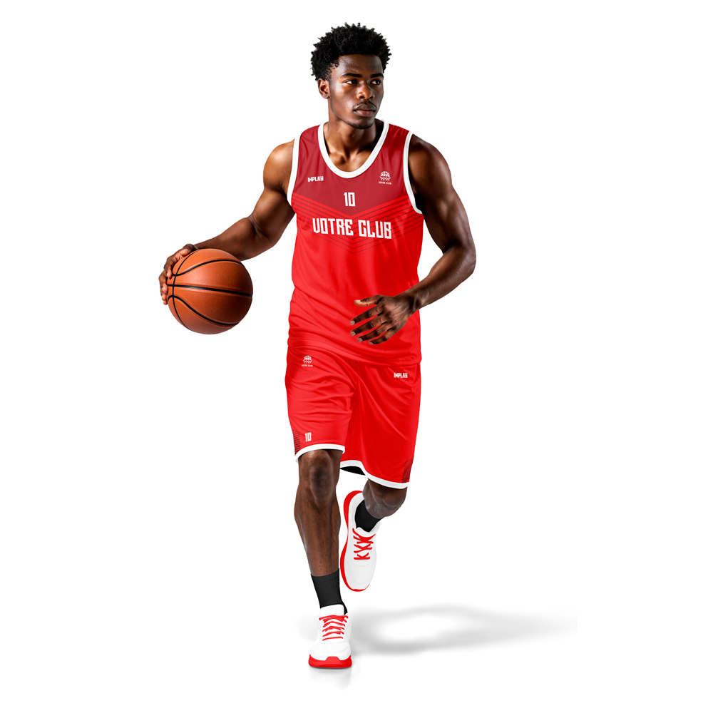 Cette tenue de basket personnalisable est conçue pour allier confort, performance et style unique. Pour obtenir votre maquette personnalisée en moins de 24 heures, ajoutez vos couleurs, votre logo, votre police d’écriture souhaitée pour un look 100% sur mesure.